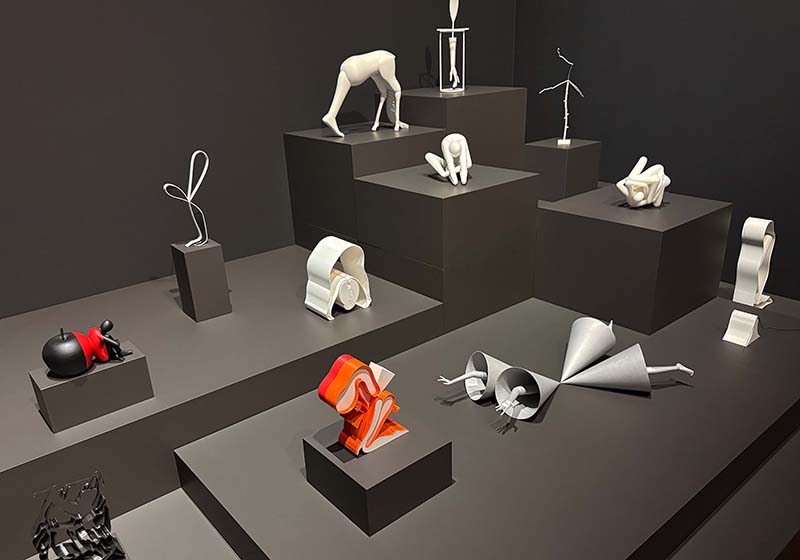 Darunter sind auch kinetische Figuren, die sich ständig in Lage und Form verändern, als würden sie leben. Diese Figuren sind Meisterwerke der Feinmechanik, angetrieben von kleinen Motoren. Da die Bewegungen computergesteuert sind, können sie sich beliebig verändern – faszinierend. |