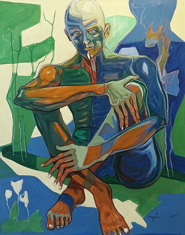 Walter Diem. Otto in coolem Blau-Grün. Acryl auf Leinwand, 80x100cm.