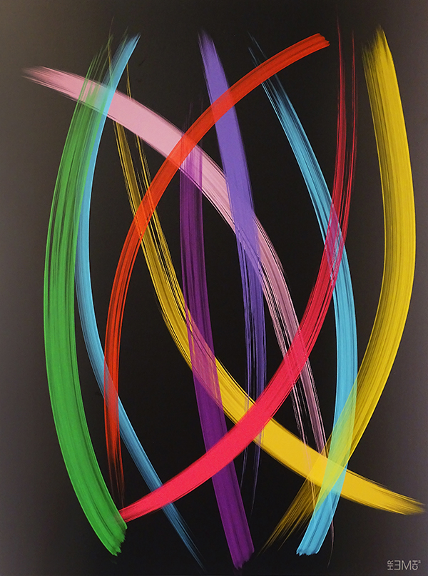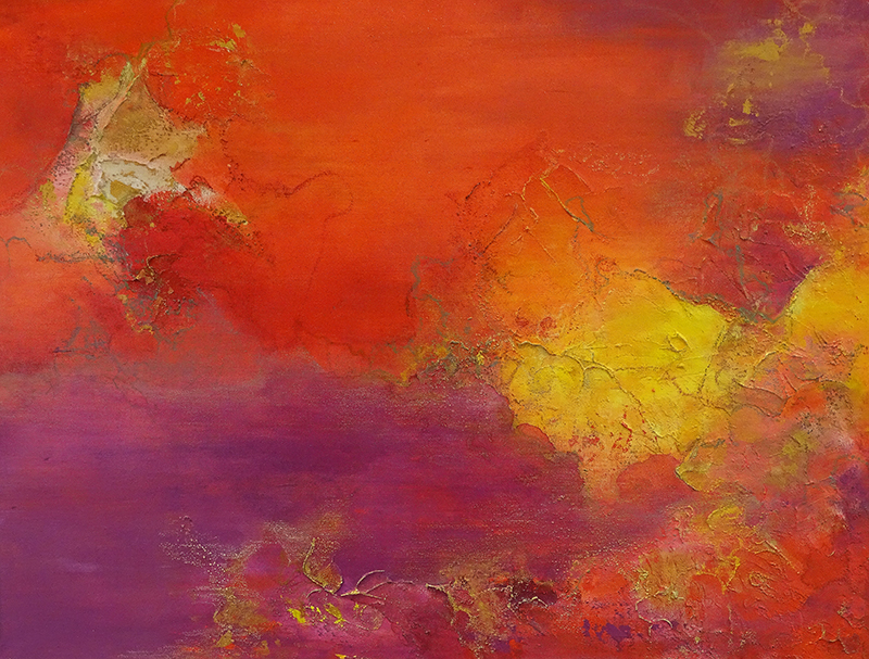 Auch in «Purple Desert» kommt dieses – angenehme – Gefühl auf, etwas Gegenständliches erkennen zu können. Könnte das nicht ein imposantes Wolkengefüge im Sonnenuntergang darstellen? Die raffiniert kombinierten Rot-, Gelb- und Violetttöne verstärken diesen Eindruck noch.