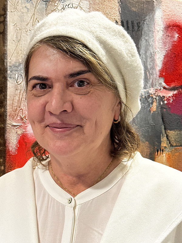 Sie kommt 1962 in Bukarest zur Welt, fühlt sich aber heute in Einsiedeln rundum wohl – das ist ihre Heimat. Ihr ursprünglicher Beruf ist Betriebswirtschafterin. Künstlerisch ist sie vorwiegend in der naturalistischen Malerei zuhause, aber vor ein paar Jahren begann sie mit abstrakten Motiven. Auch die in der Ausstellung gezeigten Arbeiten sind rundweg abstrakt – oder doch nicht ganz?