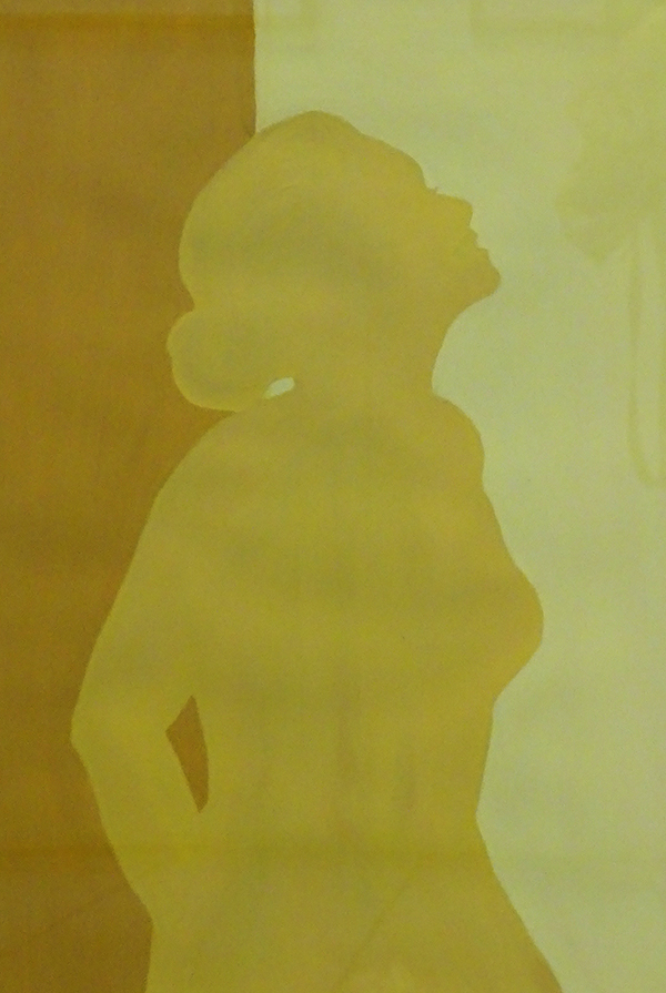 In der Ausstellung «Farb-Emotionen» kann sie aus dem Vollen schöpfen und ihren Gefühlen freien Lauf lassen. Sie zeigt monchrome Bilder von Menschen in Gelb, Rot und Blau, die ihre Emotionen zum Ausdruck bringen: Beschwingtheit, Verärgerung oder Melancholie. Eines ihrer Werke ist ein Mix von Figurativem und Abstrakten, emotional geladen und mit einem «bösem Auge» im Zentrum. Es heisst «Schiffbruch» und passt perfekt in ihre Welt voller Emotionen.
