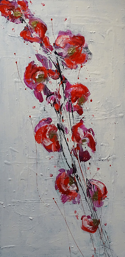 Signer Monika «Für mich ist Kunst Freiheit und Befreiung» sagt sie. Sie malt nicht nur für sich, sondern auch auf Bestellung und geht dabei auf die Wünsche ihrer Kunden ein. Für die Ausstellung malt sie ein gross-formatiges abstraktes Blumenbild, dem sie den Titel «Füstern der Orchideen» gibt. Im Hochformat, 50x100cm. |