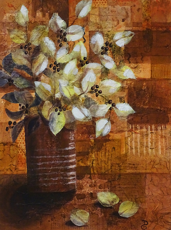 Ruoss-Haller Christa Abstrakte Malerei ist ihr Ding. Sie arbeitet in einer ganz speziellen Acryl-Papier-Acryl-Technik. Ihr abstraktes Stillleben heisst «Fülle und Reichtum» und ist eine wunderbare Farbmalerei. |