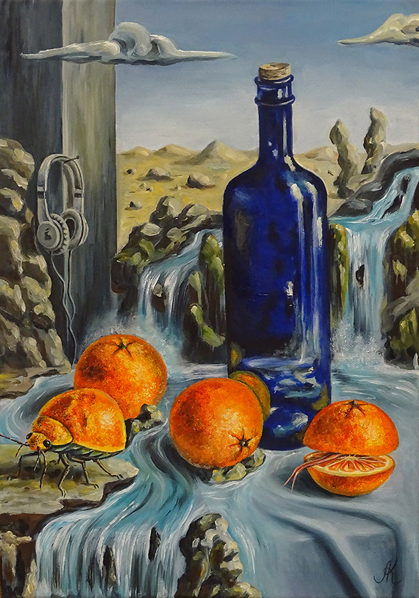 Kuznetsova Lu Wieso sollte man ein Stillleben nicht mit Surrealismus mischen? scheint sich Lu gefragt zu haben. Bei dieser Vorgabe für die Ausstellung «Stillleben à jour» ist das irgendwie logisch. So gibt's denn in Lus Stillleben Wüsten, Wasserfälle und Krabbeltiere. |