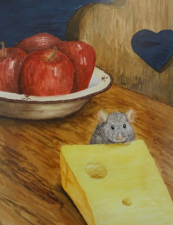 Marina Julia Aquarell-Künstlerin nennt sie sich. Sie schreibt aber auch Kindermärchen. Für ihr Stillleben geht sie unkonventionell vor und verpasst dem Bild Leben. Mit einem naschenden Mäuschen.