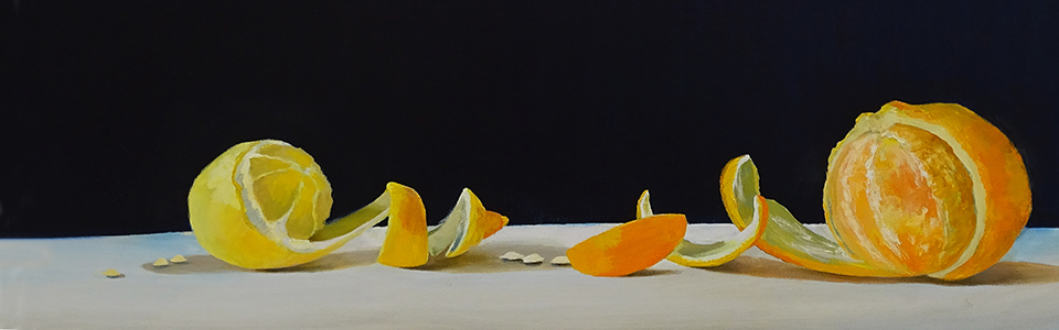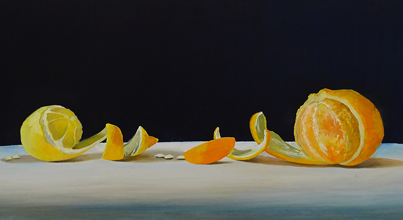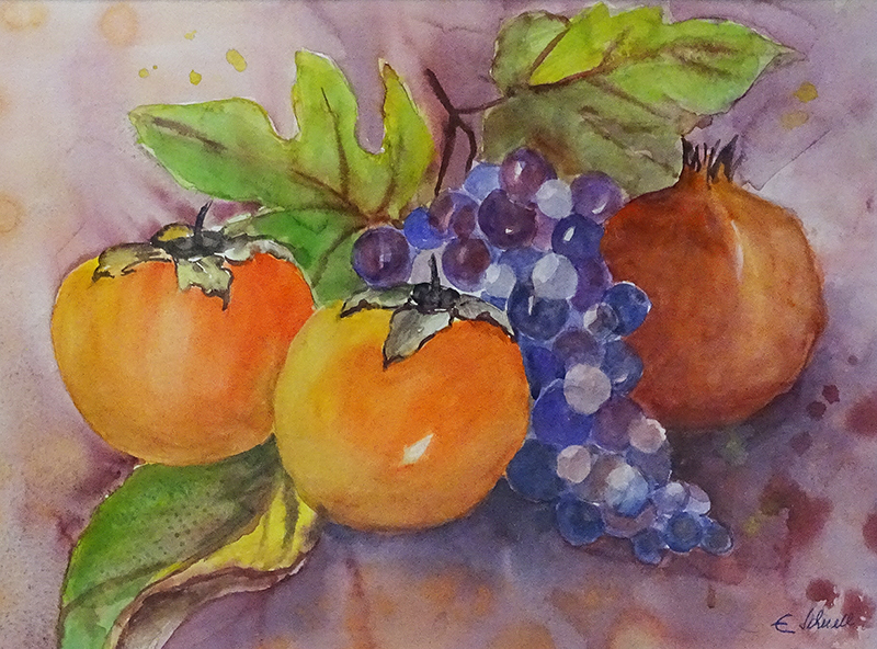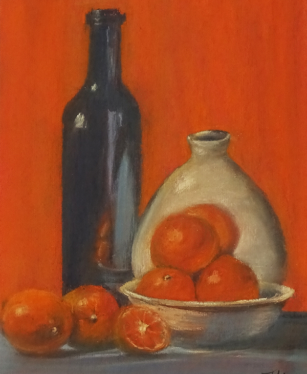 Terentieva Elena Die Künstlerin aus Moldavien lebt heute in Adliswil. Sie ist mit drei Werken in der Ausstellung vertreten: einem zart-feinen Kirschblüten-Stillleben, einem Hortensienzweig und einem farbstarken Orangen-Stillleben, alles mit Soft-Pastellkreiden erstellt. |