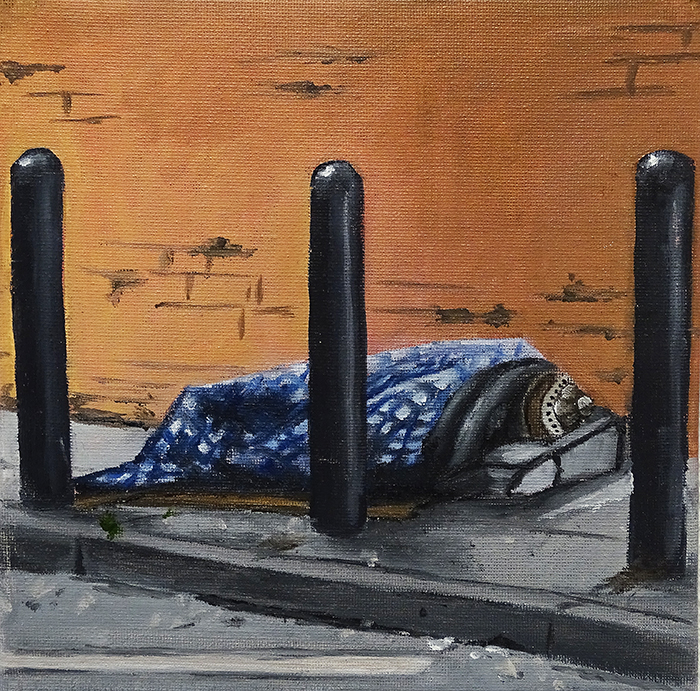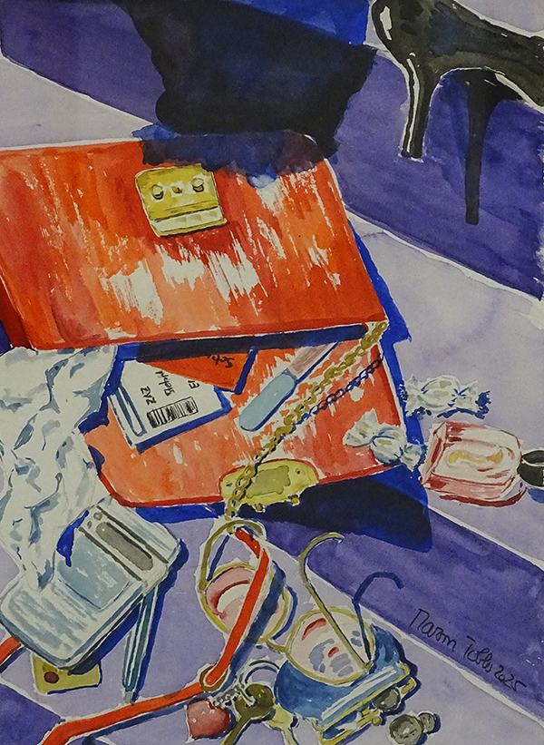 Tobler Marion Sie ist als Ortspräsidentin der FDP unterwegs, aber auch eine begeisterte Malerin. In ihrem Still erzählt sie die Geschichte eines Fehltritts. Der Schuh oben rechts gibt den Hinweis: Es ist kein symbolischer, sondern ein echter Fehltritt.