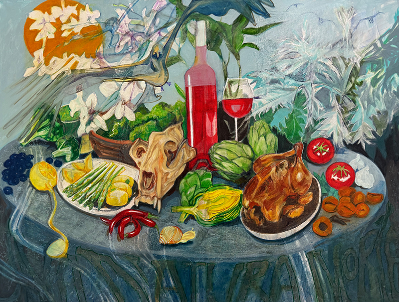 Dohrmann Silke «Malen ist für mich eine Form der Meditation, des Gebets, der Stille. Ich tauche in Farben und Gefühle ein und versuche gleichzeitig, als Zeitzeugin genau hinzuschauen». Ihr Stillleben trägt eine Botschaft: Die Reise kann los gehen.