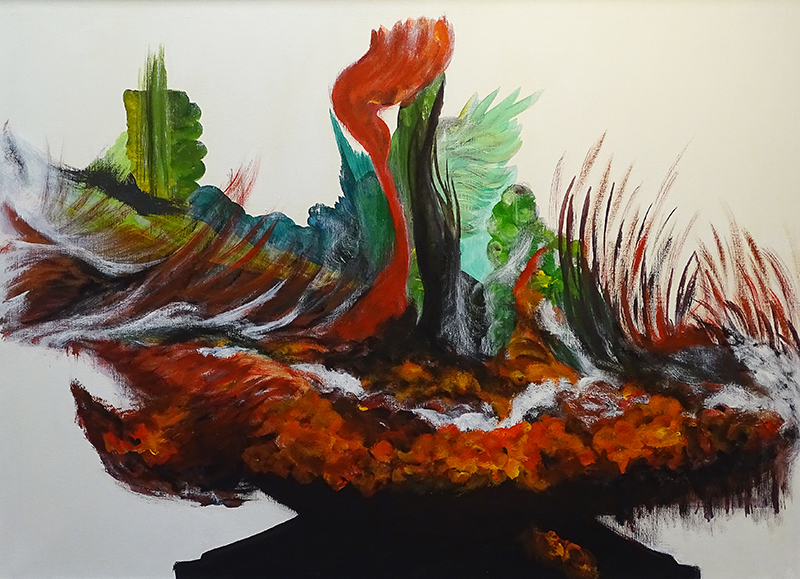 Isch Andrea In erster Linie ist sie Pianistin und gibt Klavierunterricht – sie malt aber auch gerne. Am liebsten Porträts und Eulen – ihr Portfolio lebt davon. In der Ausstellung zeigt sie ihr «Ratatouille». Ein gewaltiges Farbspektakel.