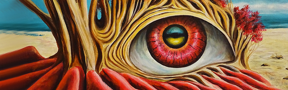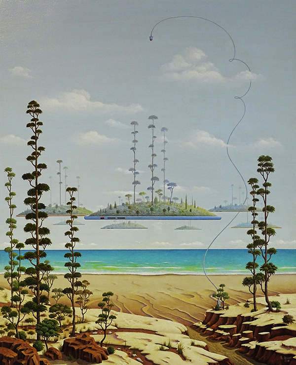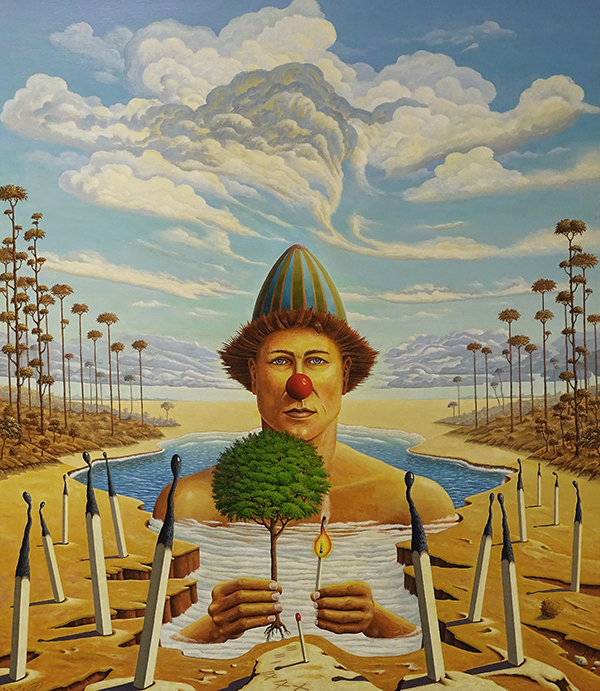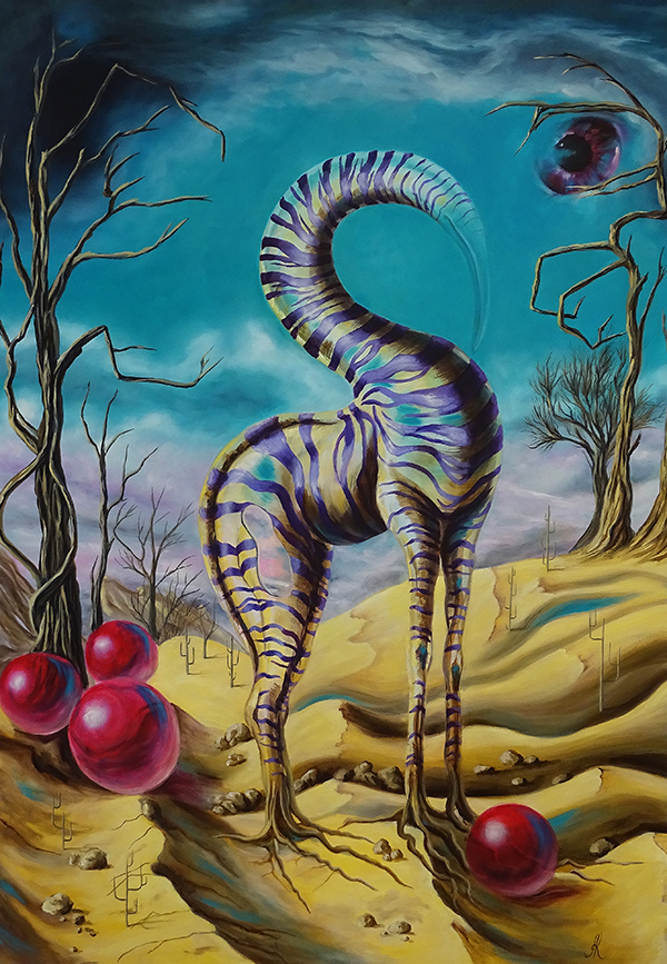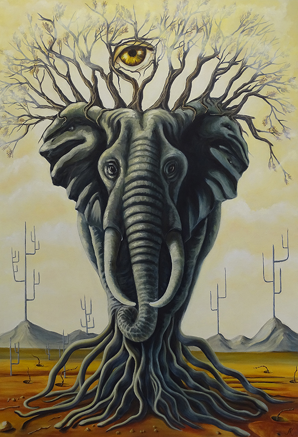 Roland ist ein Denker und Philosoph, der die Welt mit wachem Geist beobachtet. Das kommt in seinen surrealistischen Werken gut zum Ausdruck. In diesen greift er brennend aktuelle Themen auf, die die Welt und auch ihn selbst beschäftigen. Wie der voran schreitende Klimawandel. Oder moderne Hightech-Entwicklungen, die nicht viel Gutes verheissen.