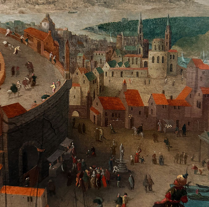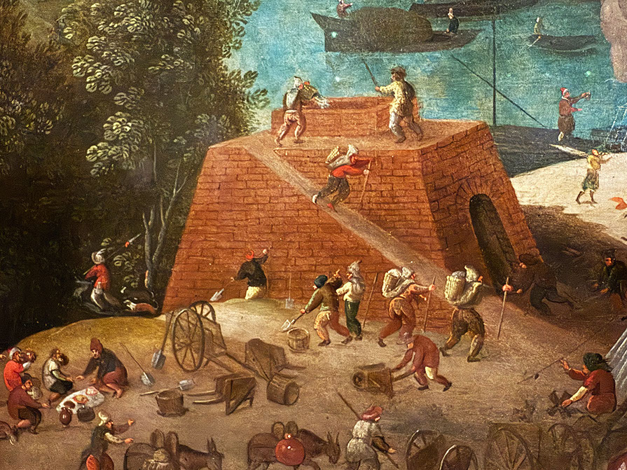 Abel Grimmer (1570-1620). Turm zu Babel, 1595. Detail. Louvre Abu Dhabi.