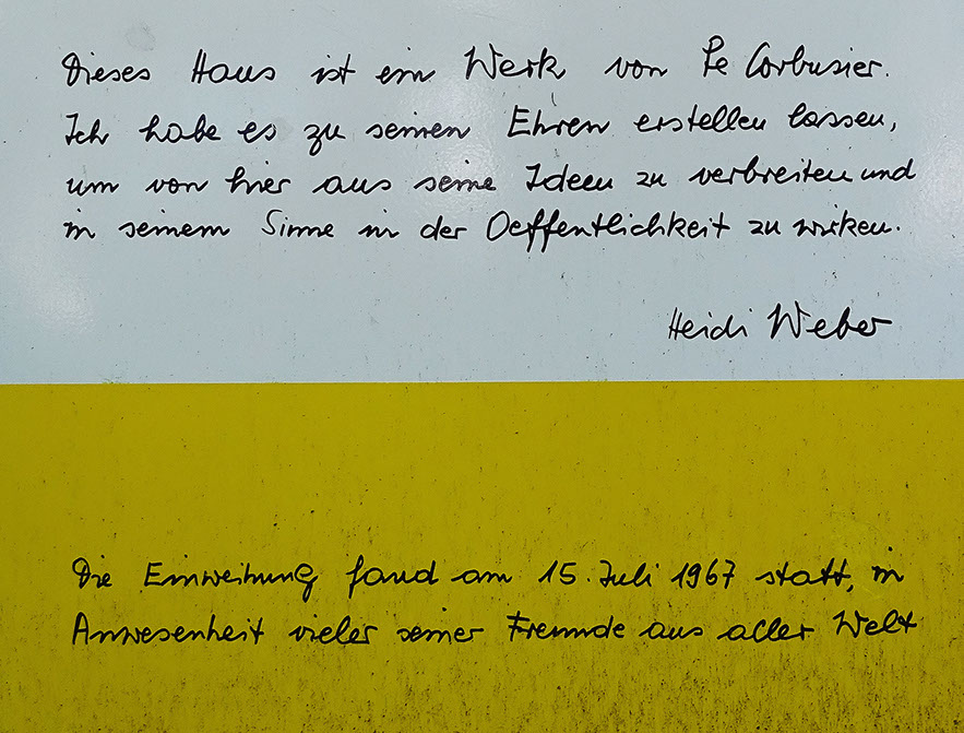 Erinnerungstafel beim Pavillon Le Corbusier.