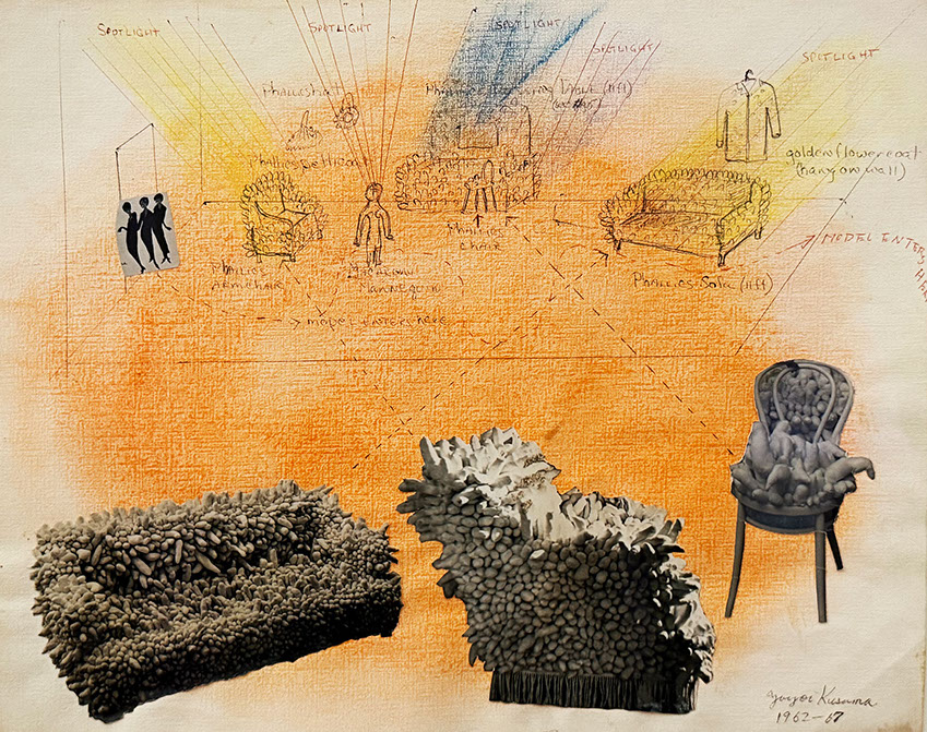 1963-Yayoi Kusama (1929). Untitled (Stuhl, Kleid, Handtasche), 1963-65. Collection of the artist.