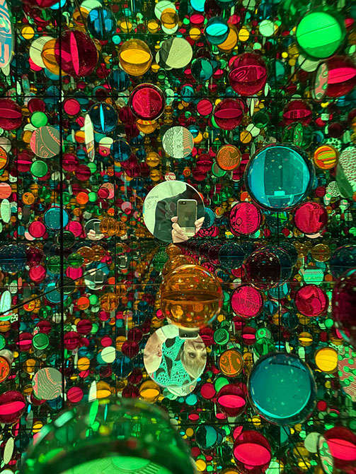 2021-Yayoi Kusama (1929). The Universe as seen from the Stairway to Heaven, 2021. Mirror, Glass, Acrylic. Ota Fine Arts.