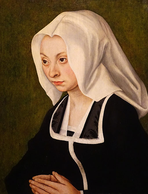 Lucas Cranach d.Ä. (1472-1553). Bildnis einer betenden Frau, 1508. Detail. Kunsthaus Zürich.