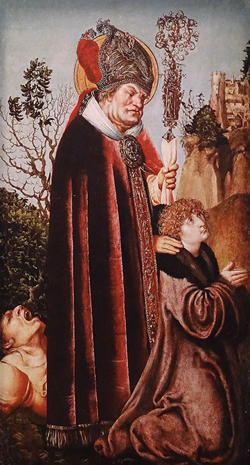 Lucas Cranach d.Ä. (1472-1553). Der hl. Valentin empfiehlt einen Stifter, 1502. Akademie der bildenden Künste, Wien.