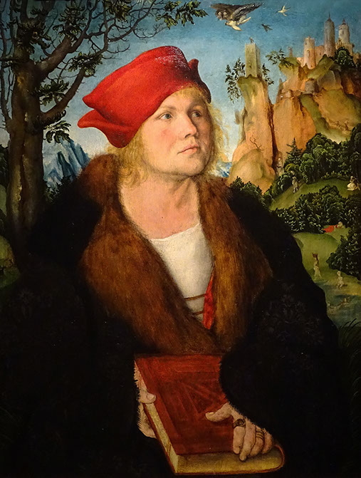 Lucas Cranach d.Ä. (1472-1553). Bildnis eines jungen Mannes,ca. 1500. Hessische Hausstiftung, Kronberg im Taunus.