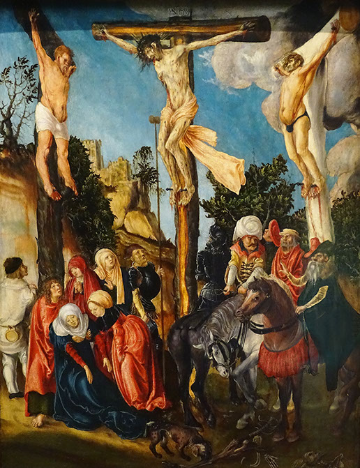 Lucas Cranach d.Ä. (1472-1553). Kreuzigung Christi («Schottenkreuzigung»), um 1500. Kunsthistorisches Museum Wien.