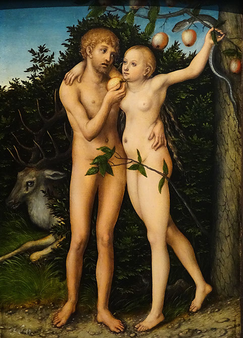 Lucas Cranach d.Ä. (1472-1553). Sündenfall, nach 1537. Kunsthistorisches Museum Wien.