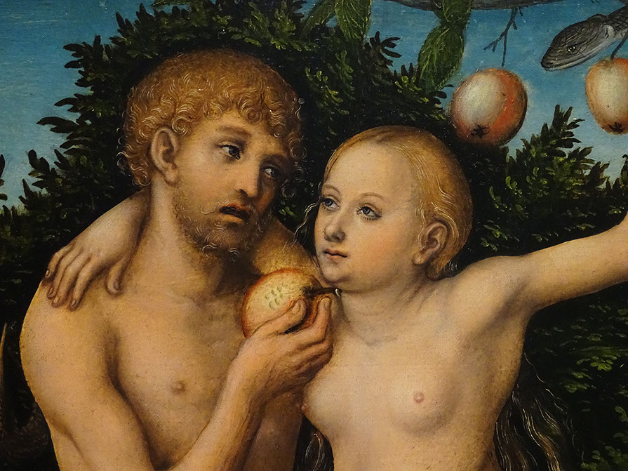 Lucas Cranach d.Ä. (1472-1553). Sündenfall, nach 1537. Detail. Kunsthistorisches Museum Wien.