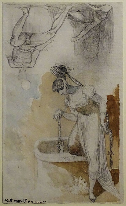 Frau mit langen Zöpfen, eine in einem Brunnen gefangene Person neckend, 1817-1822. Staatl. Kunstsammlung Dresden.