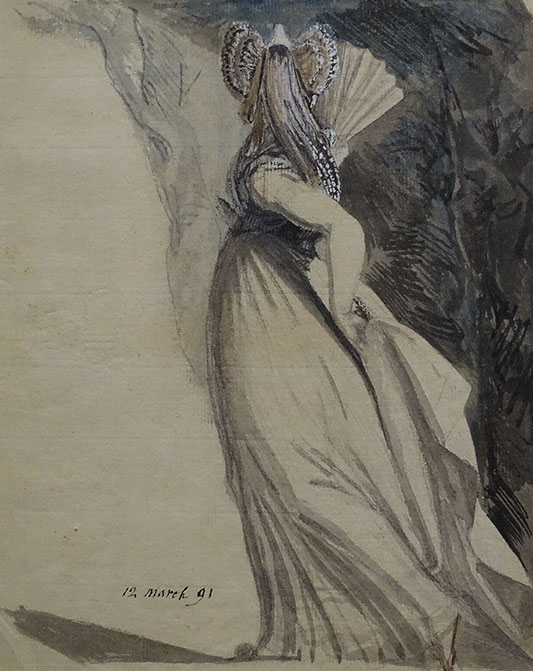 Johann Heinrich Füssli (1741-1825). Stehende Frau in Rückansicht, 1798-1800. Auckland Art Gallery.