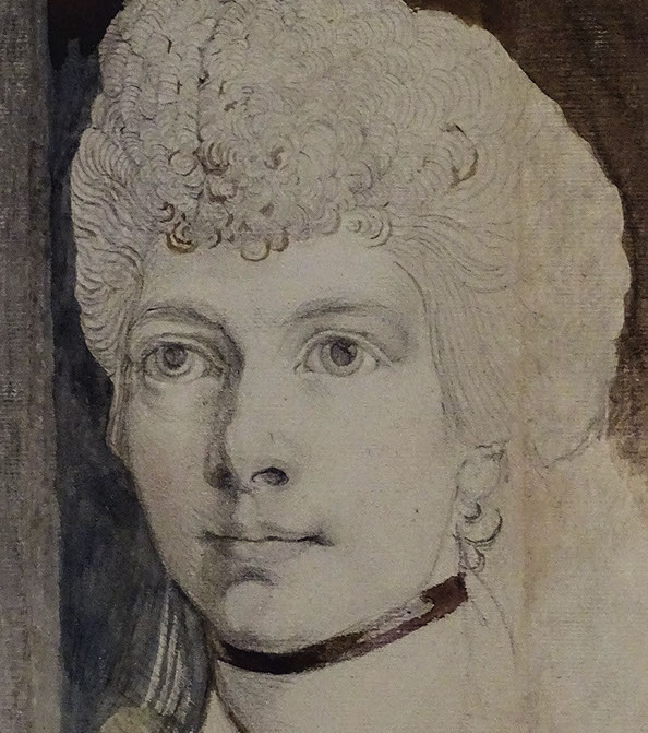 Johann Heinrich Füssli (1741-1825). Sophia Füssli mit kunstvoll geflochtenem Kopfputz, 1795. Auckland Art Gallery.