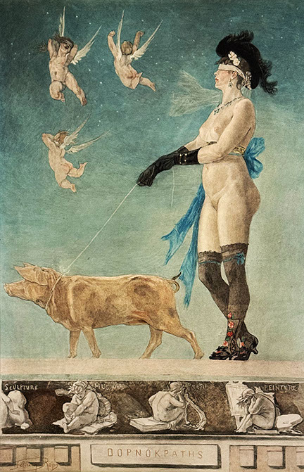 Félicien Rops (1833-1898). Pornocratès (La Dame au cochon), 1896. Royal Library of Belgium, Brussels.