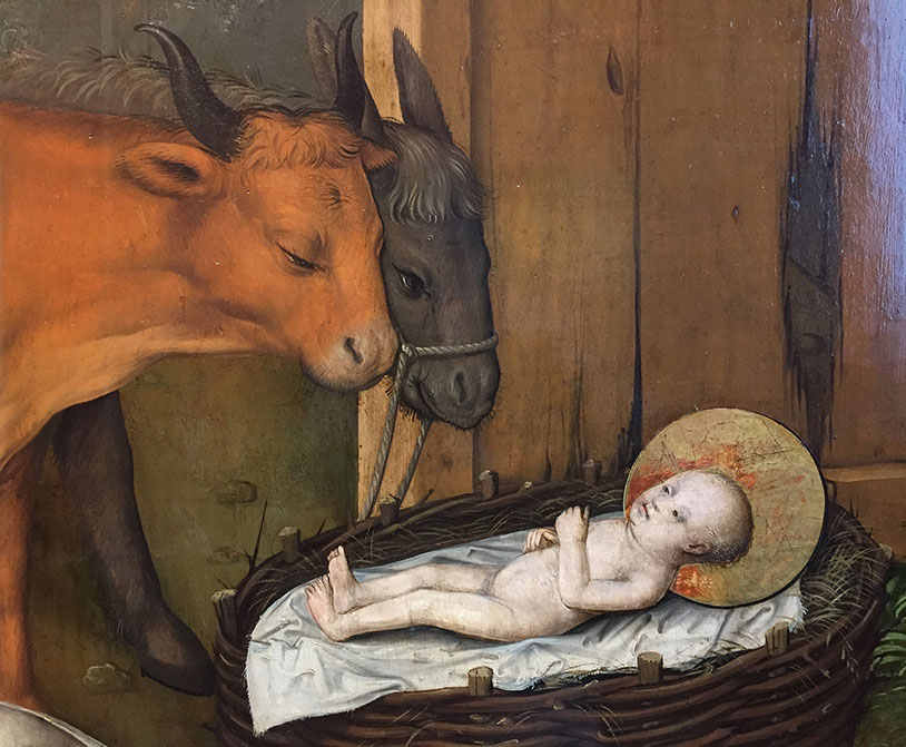 Paul Löwensprung, der ältere Berner Nelkenmeister (1460-1499). Geburt Christi, um 1490. Detail.