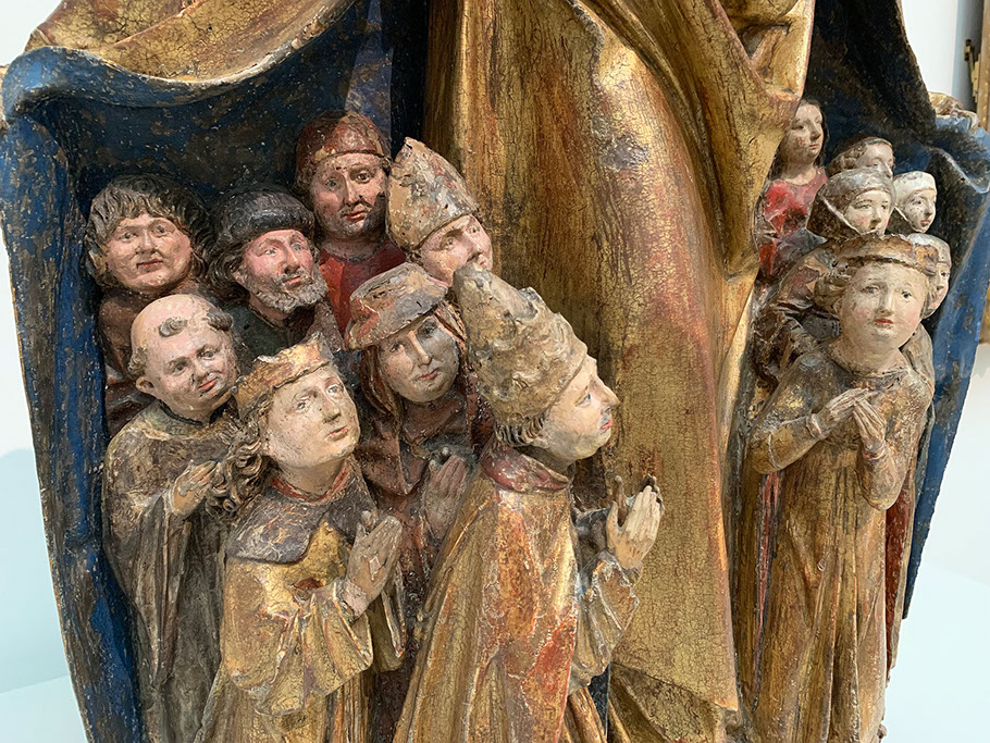 Schutzmantelmadonna. Künstler unbekannt, um 1500, Oberschwaben. Detail. Sammlung Bührle, Kunsthaus Zürich.