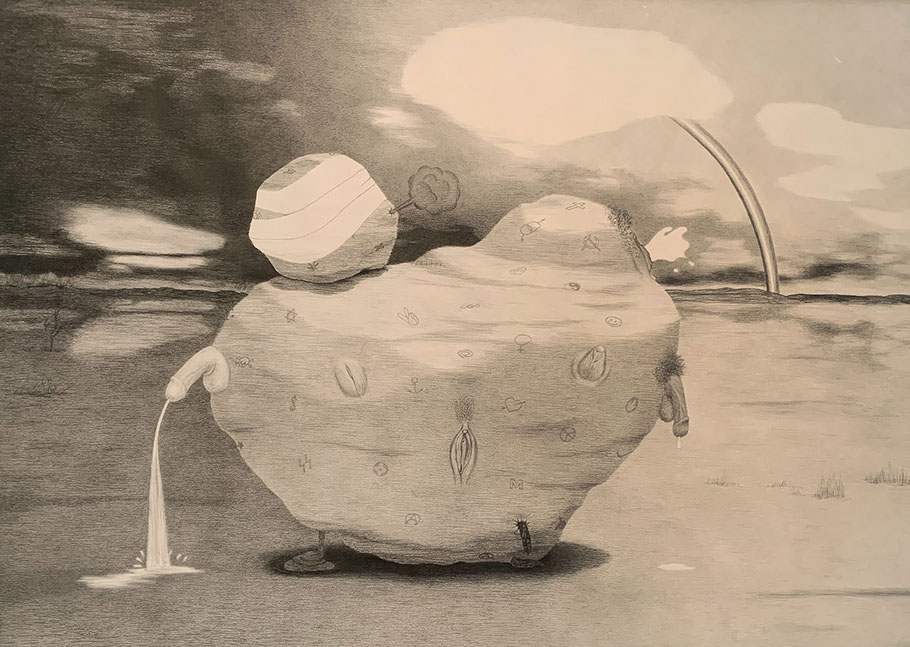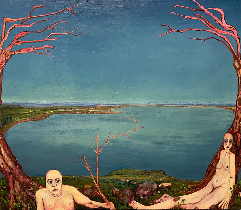 Andriu Deplazes (1933 ZH). Zwei Körper, zwei Bäume und See, 2018. Galerie Peter Klichmann, Zürich.