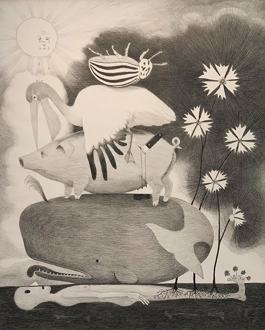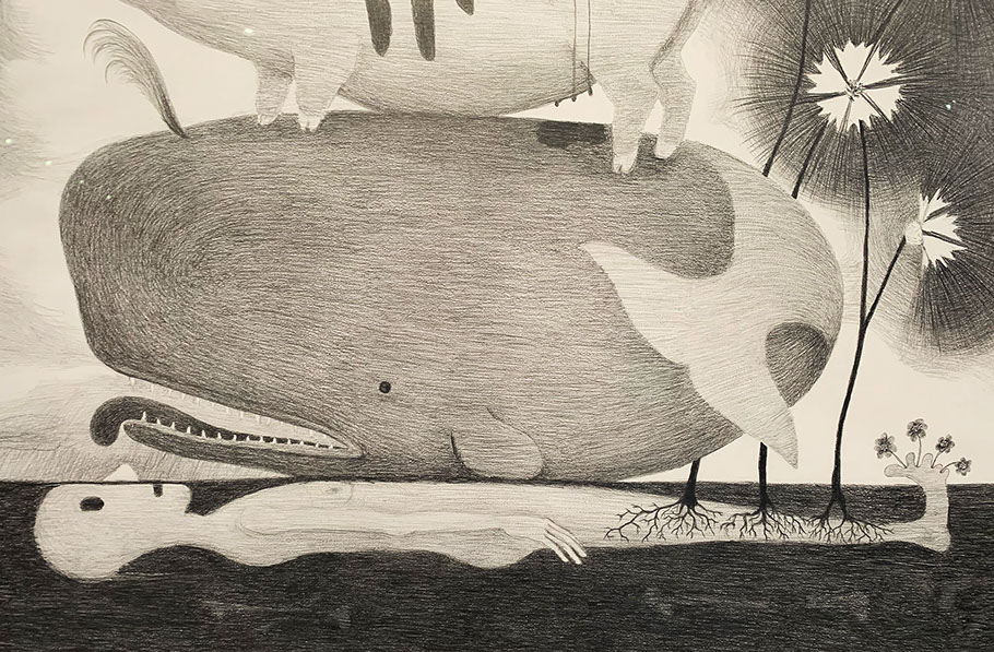 Sabian Baumann (1962 Zug). Selbst mit Blumen und Tieren, 2013. Detail 3. Privatbesitz.