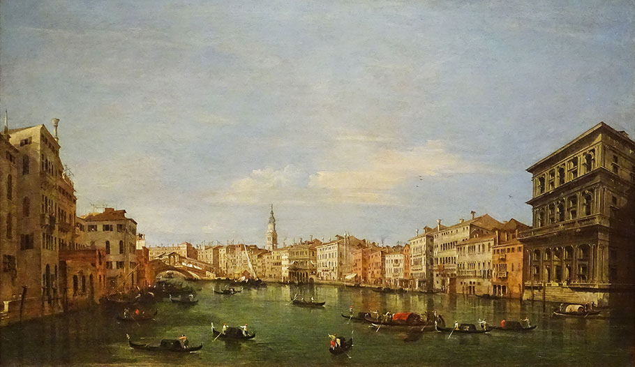 Francesco Guardi (1712-1793). Il Canal Grande a palazzo Grimani, verso il ponte di Rialto, 1755.
