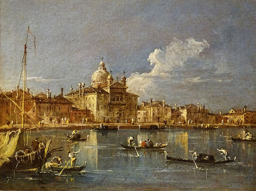 Francesco Guardi (1712-1793). L'isola della Giudecca con le chiese delle Zitelle e del redentore, 1780.