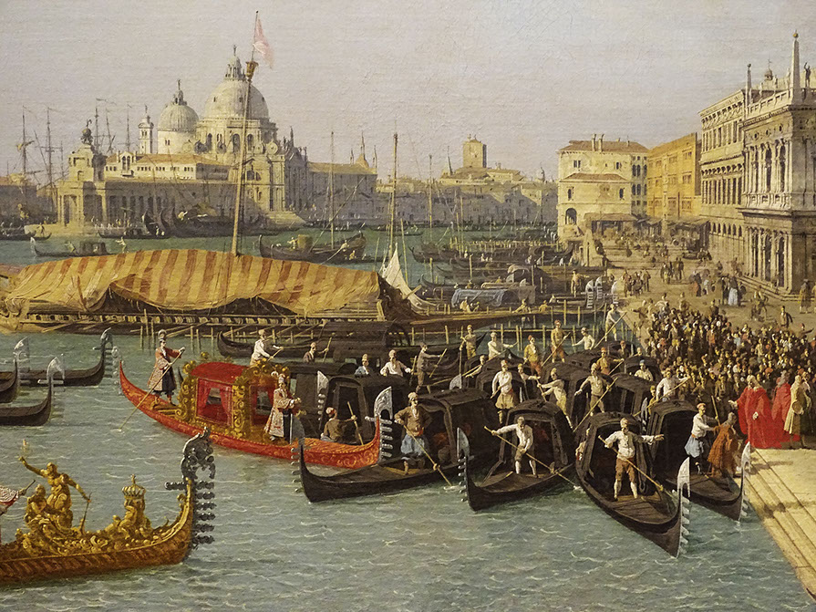 Giovanni Antonio Canaletto (1697-1768). Empfang eines Botschafters vor dem Dogenpalast, 1730. Detail.