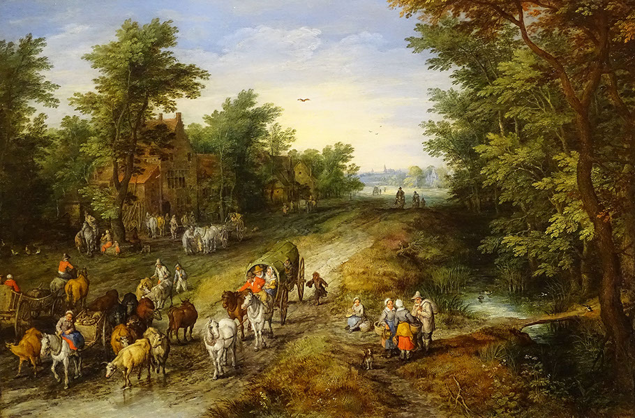 1611-Jan Brueghel (1568-1625). Landstrasse mit Reisenden und Wirtshaus, 1611. Kunsthaus Zürich.