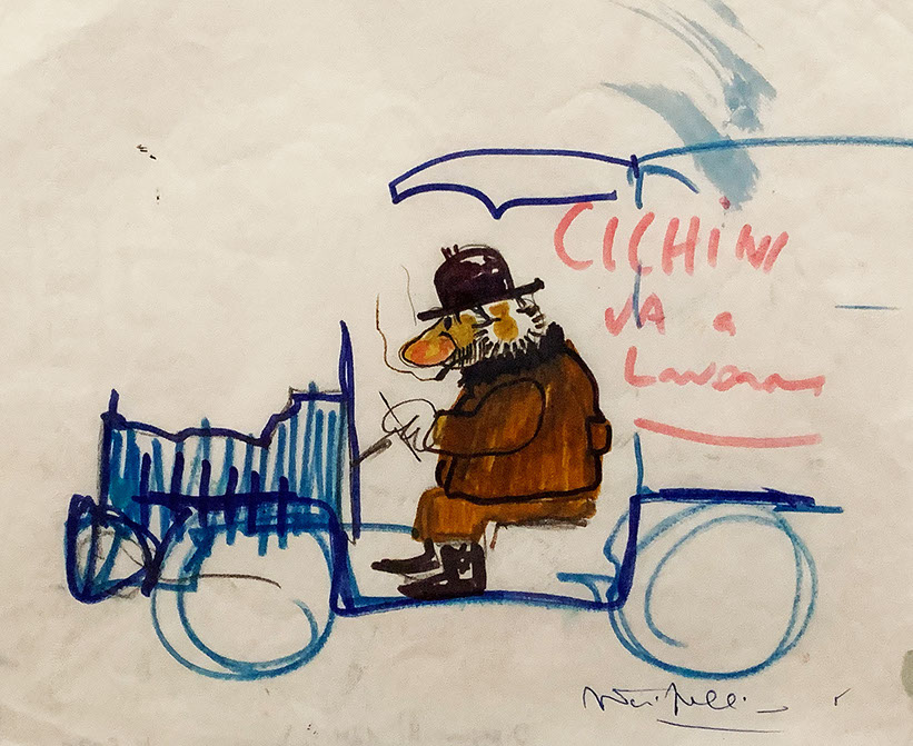 1972-Federico Fellini (1920-1993). Cichini va a lavoro, 1972. Für Amarcord. Sammlung Jakob und Philipp Keel.