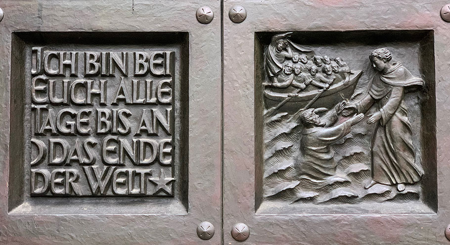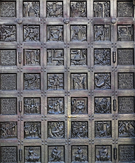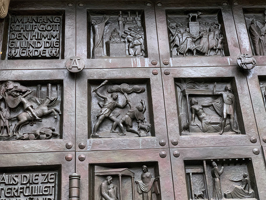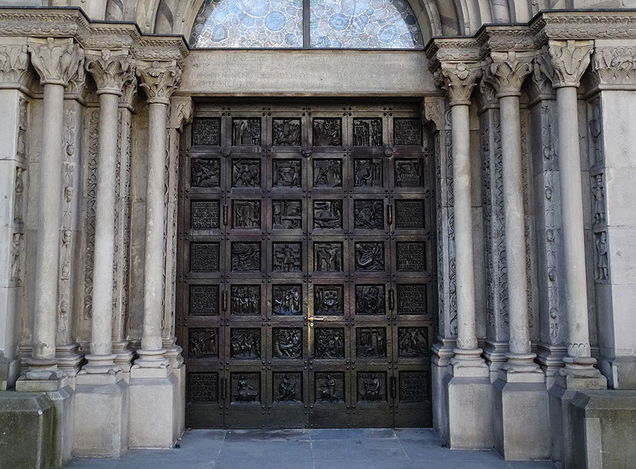 Das Hauptportal mit der Bronzetüre von Otto Münch (1885-1965), erschaffen 1950.