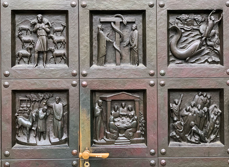 Detail der Bronzetüre: Ruth aus dem Alten Testament.