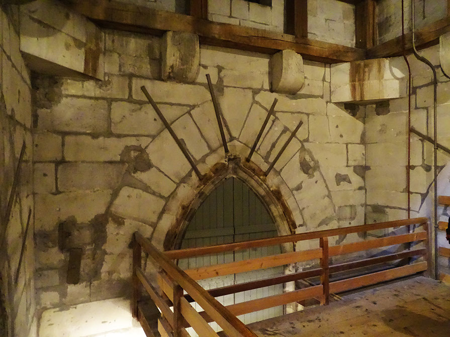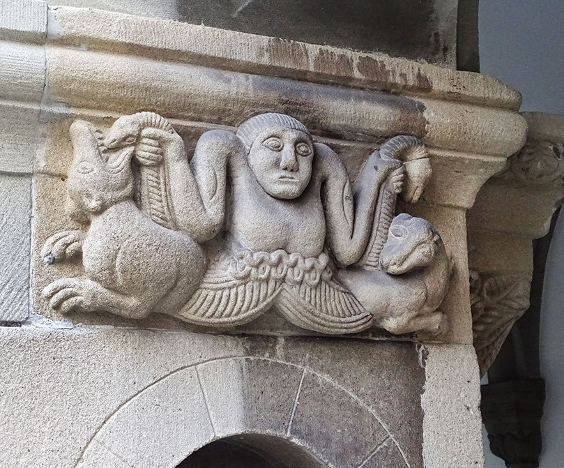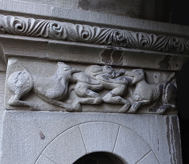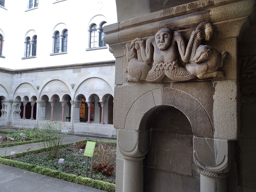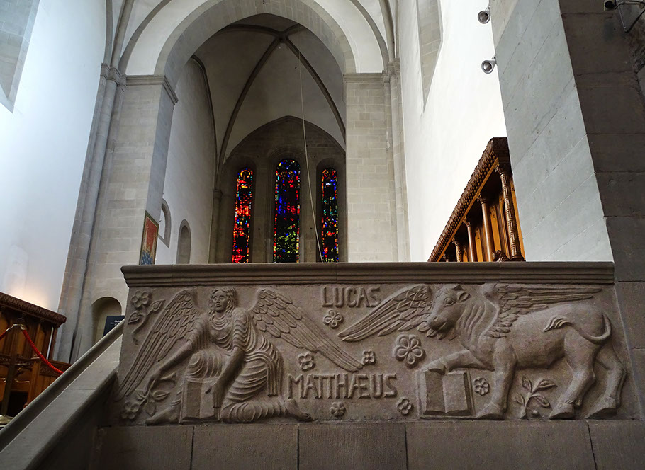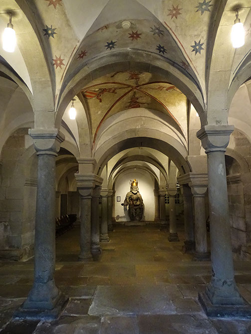 Die Krypta mit der Original-Statue Karls des Grossen. Kopie davon am Südturm von Otto Münch (1885-1965).