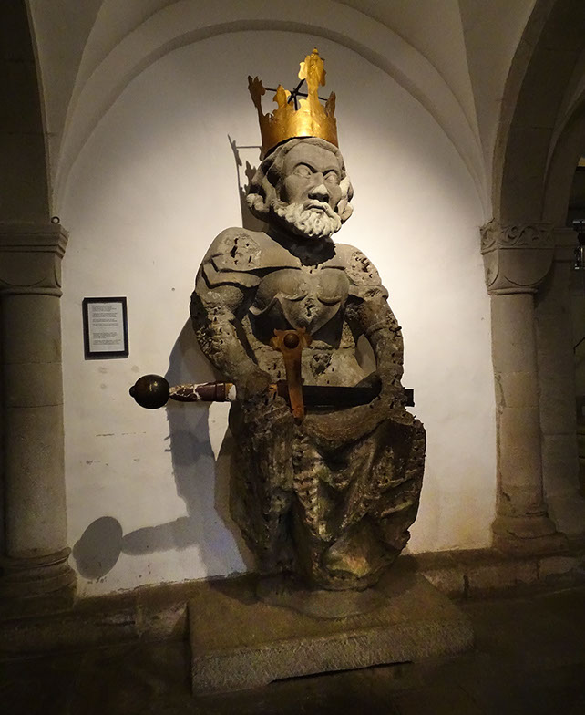 Detail der Original-Statue Karls des Grossen in der Krypta.