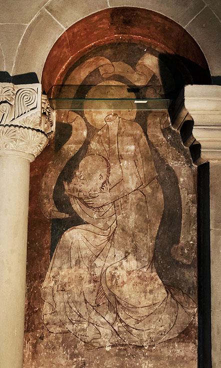 Wandfresko in der Zwölfboten-Kapelle: Märtyrer Felix mit abgeschlagenem Kopf.