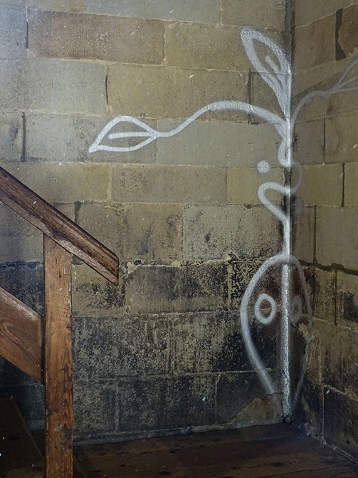 Im Karlsturm. Wandsprayereien von Harald Naegeli.