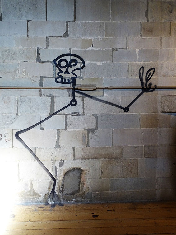 Im Karlsturm. Wandsprayerei von Harald Naegeli.