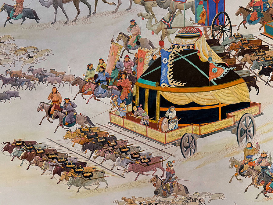 Amarsanaa, Galmandakh (*1973). Der grosse Umzug, Mongolei, 2025. Ausschnitt. Lkham Gallery.