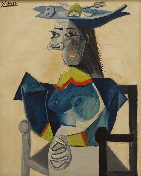 Pablo Picasso (1881-1973). Femme assise au chapeau en forme de poisson, 1942. Stedelijk Museum Amsterdam.