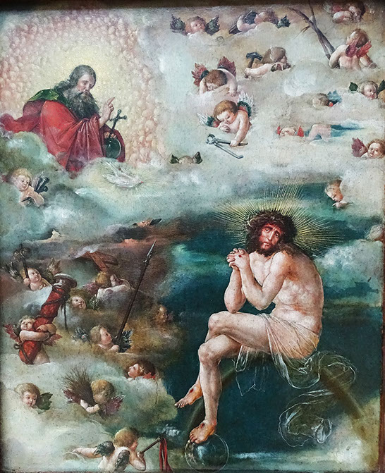 Ambrosius Holbein (1494-1519). Christus bei Gottvater Fürbitte einlegend, 1515. Detail.