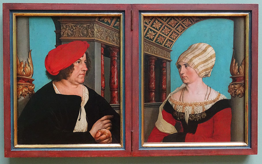 Hans Holbein d.J. (1497-1543). Doppelbildnis des Jacob Meyer zum Hasen und seiner Frau Dorothea Kannengiesser, 1516.