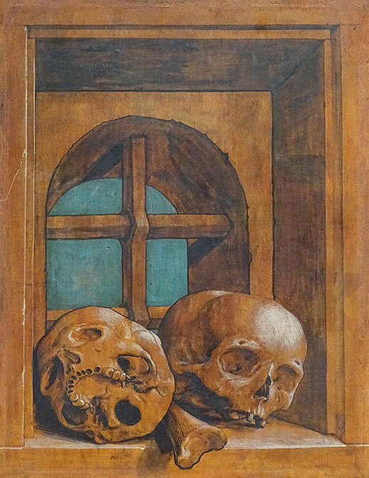 Hans Holbein d.J. (1497-1543). Zwei Schädel in einer Fensternische, 1520.