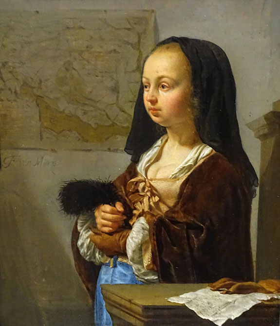 Frans van Mieris (1635-1681). Zum Ausgehen bereite junge Dame mit Federfächer, 1657-59.
